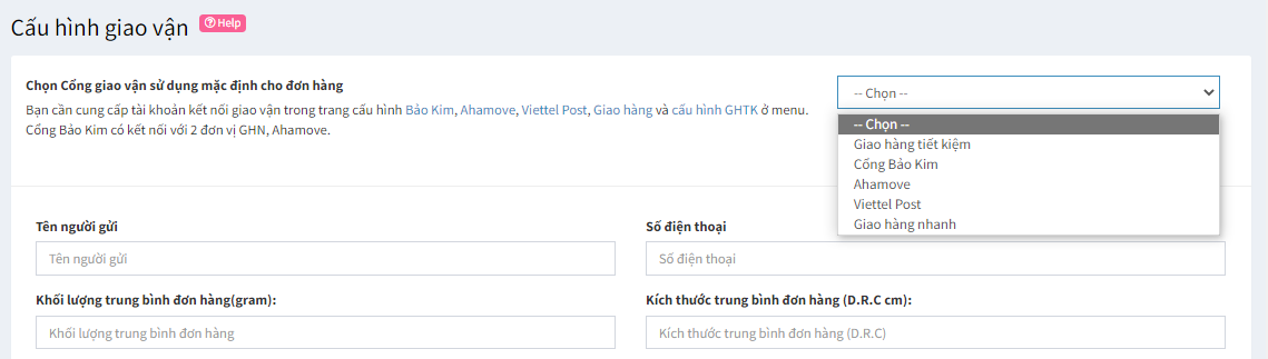 **CẤU HÌNH GIAO VẬN SHOP TỰ GIAO ĐƠN HÀNG**