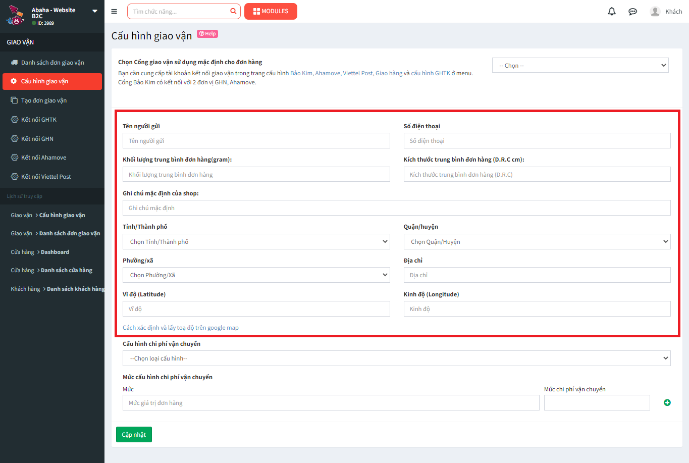 <figure><img src="https://1513765949-files.gitbook.io/~/files/v0/b/gitbook-x-prod.appspot.com/o/spaces%2F9Jsy6qlXRuUkJRf3uYrF%2Fuploads%2Fw9kdG5JHbXo18guog33m%2Fcau%20hinh%20chi%20phi%20van%20chuyen.png?alt=media&#x26;token=535a522b-0252-4909-b19b-1b83837b0073" alt=""><figcaption></figcaption></figure>